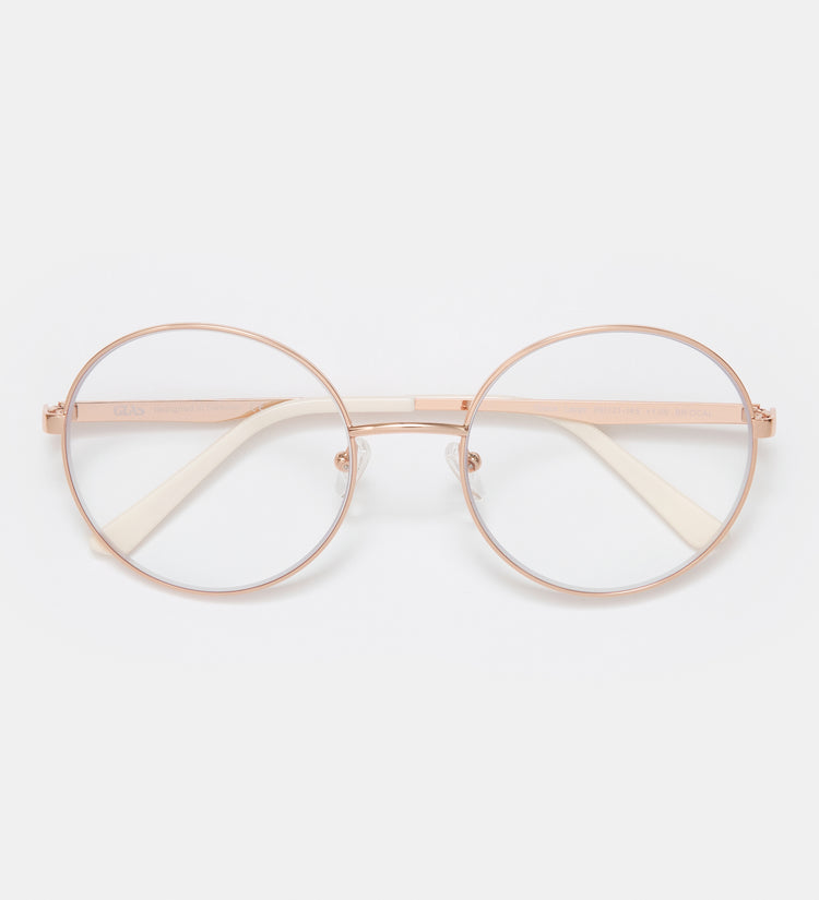 De Grace Rose Gold Large Blue Light-bril heeft een opvallend roségouden montuur met een breder silhouet, ontworpen om schadelijk blauw licht van digitale schermen te filteren. Deze elegante, lichtgewicht bril vermindert de belasting van de ogen bij langdurig schermgebruik en accentueert tegelijkertijd uw verfijnde stijl, waardoor hij de perfecte combinatie is van bescherming en verfijnde mode.